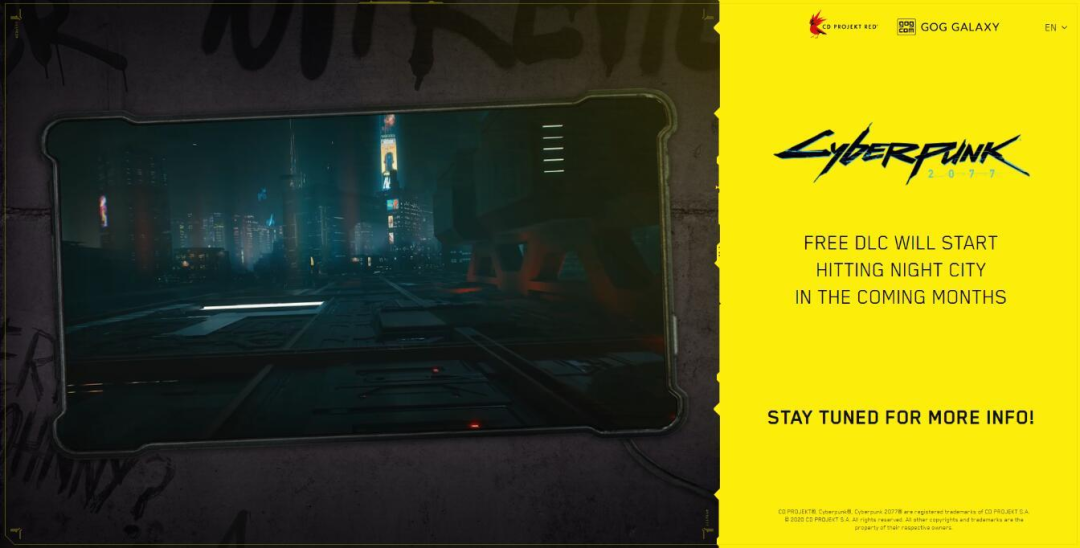 《賽博朋克2077》英文官網顯示免費DLC將會在接下來的幾個月上線,但是並沒有公布具體時間。