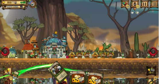 其實如果你對這類游戲很熟悉的話,看到截圖應該就能猜出大概的玩法。這款來自韓國cassel games團隊製作的《Ratropolis》融合了致命的塔防經營游戲《Kingdom》和卡牌帝王《殺戮尖塔》兩家的長處,玩家必須扮演一個老鼠城邦的領導人,使用卡牌抵擋住敵人的進攻,還要想辦法不停的建造建築、擴張領地,並且要存活過30個回合。