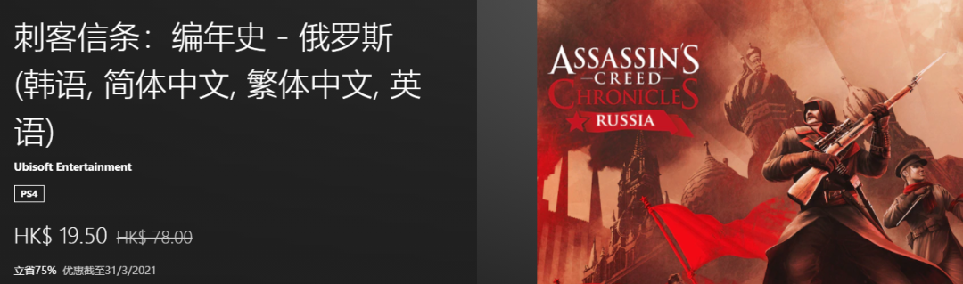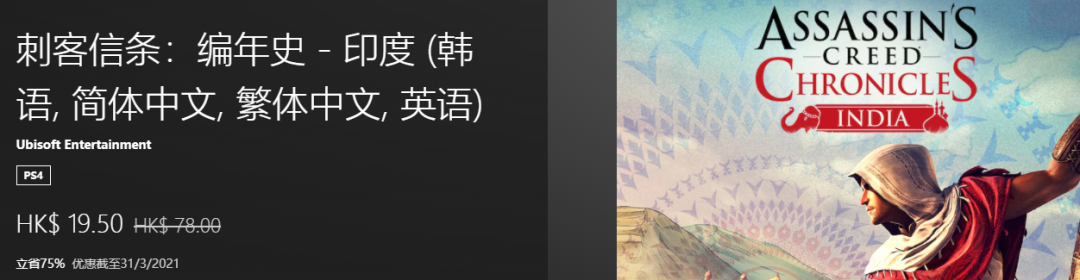 刺客信條編年史 中國 印度 俄羅斯 均為HK$19.50