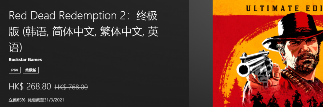 荒野大鏢客 救贖2 終極版 3.5折 HK$268.80