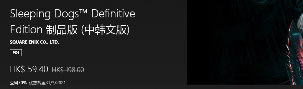雖然史低為HK$70.00,但很久沒出來了,本次折扣可以考慮入手~
