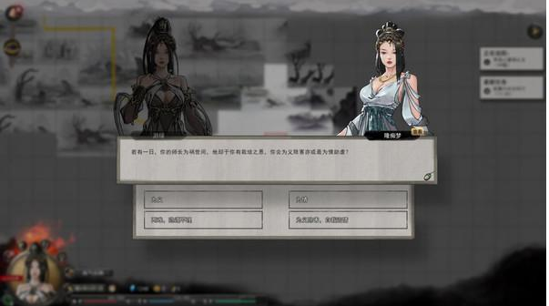過月讀條後會觸發主線劇情,後羿追著聖陽殺,聖陽掉落一個身法,然後後羿追上來有兩個選項——這里注意了,這兩個選項會對你之後的遊玩有不一樣的體驗,1,阻止後羿(開打進入劇情) 2,不理他(暫時不進入劇情)