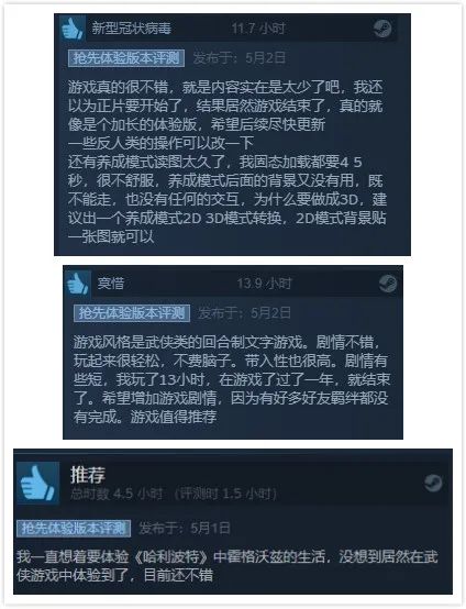 許多玩家表示遊戲的畫風、養成系統等內容非常不錯,但也有玩家表示目前《俠隱閣》的內容還是有點少(目前還是EA版本)。