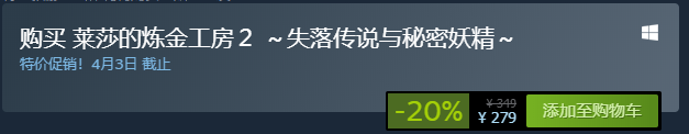 《萊莎》系列Steam開啟特惠活動,1代作品五折特惠,2代作品八折特惠。