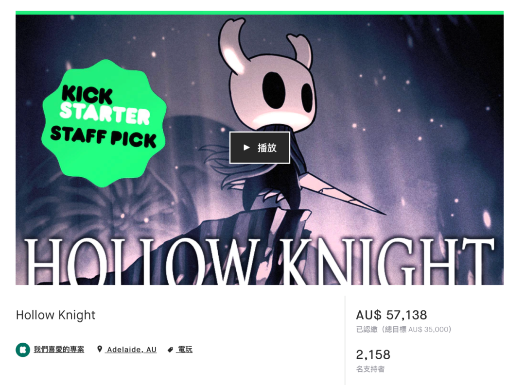 2014年11月,Team Cherry在Kickstarter上發起眾籌,並在一個月中籌集到了5.7萬澳元,約合人民幣28.9萬元。這不到30萬元的眾籌款,對一款獨立遊戲來說不少,但也絕對不算多。這在國內一些遊戲公司,甚至還不夠給一位主程發工資的。