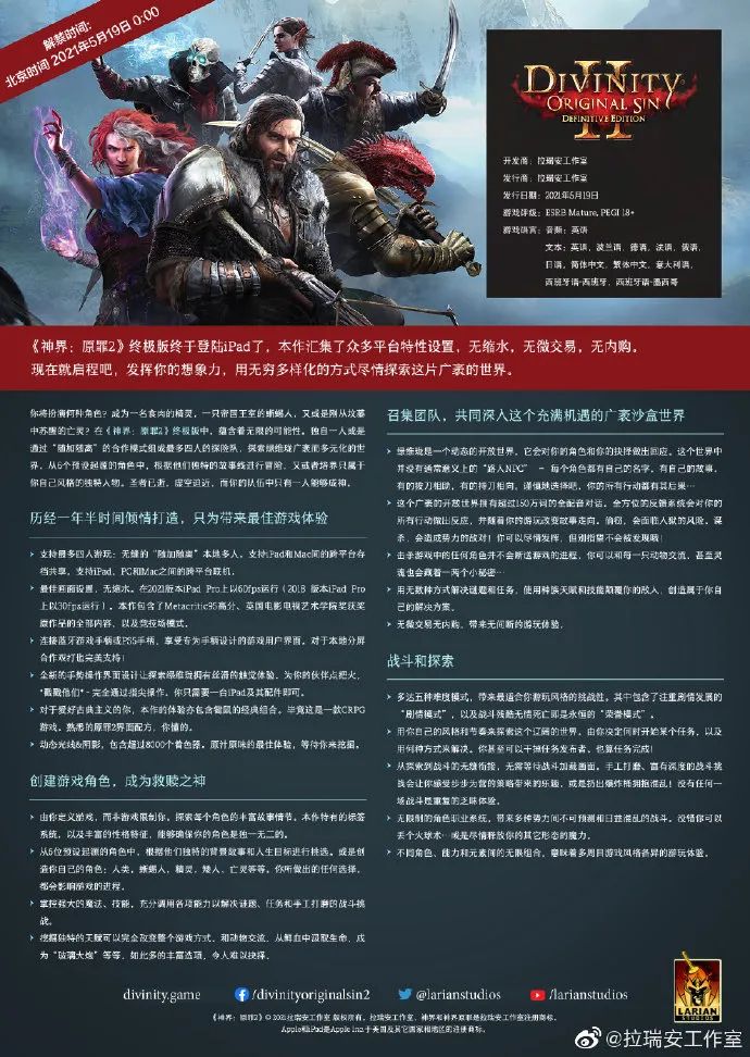 《神界:原罪2》終極版,拉瑞安工作室屢獲數獎的RPG,將在北京時間五月19日的凌晨0點登陸iPad Pro平台。絕對沒錯的!