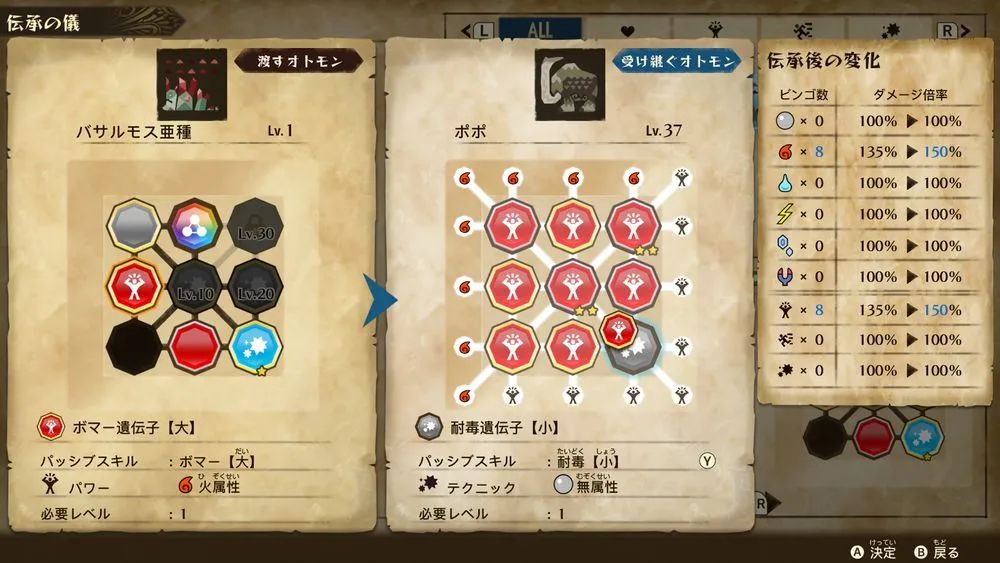 甚至可以透過傳承斬龍、巨獸、泡狐龍和電龍的羈絆基因,培育出能夠使用《怪物獵人世代》四大主題魔物之技能的青熊獸。