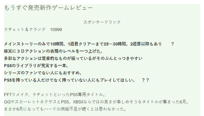 Fami通官方認為:《瑞奇與叮噹:分離》充分發揮了PS5的主機性能,遊戲中繁多的武器帶來更多樂趣,推薦新老玩家都來遊玩。只玩主線的話,大概只需要10小時,1周目完整遊玩的話需要25-30小時。