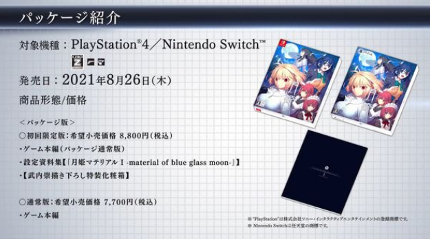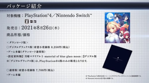 在昨日(6月10日)舉辦的「TYPE-MOON TIMES Vol.2」直播活動中,TYPE-MOON公布了諸多《月姬》重製版《月姬 A piece of blue glass moon》的新情報,其中包括本作的第二彈宣傳片、新聲優、限定版的封面圖和店鋪特典用圖等等。本作將於8月26日登陸PS4與Switch平台。