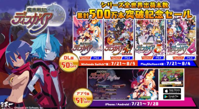 遊戲工作室Nippon Ichi Software於昨日(7月21日)宣布,《魔界戰記》系列遊戲的全球銷量現已突破500萬。為了慶祝這一里程碑的時刻,官方開啟了該系列作品的5折促銷。