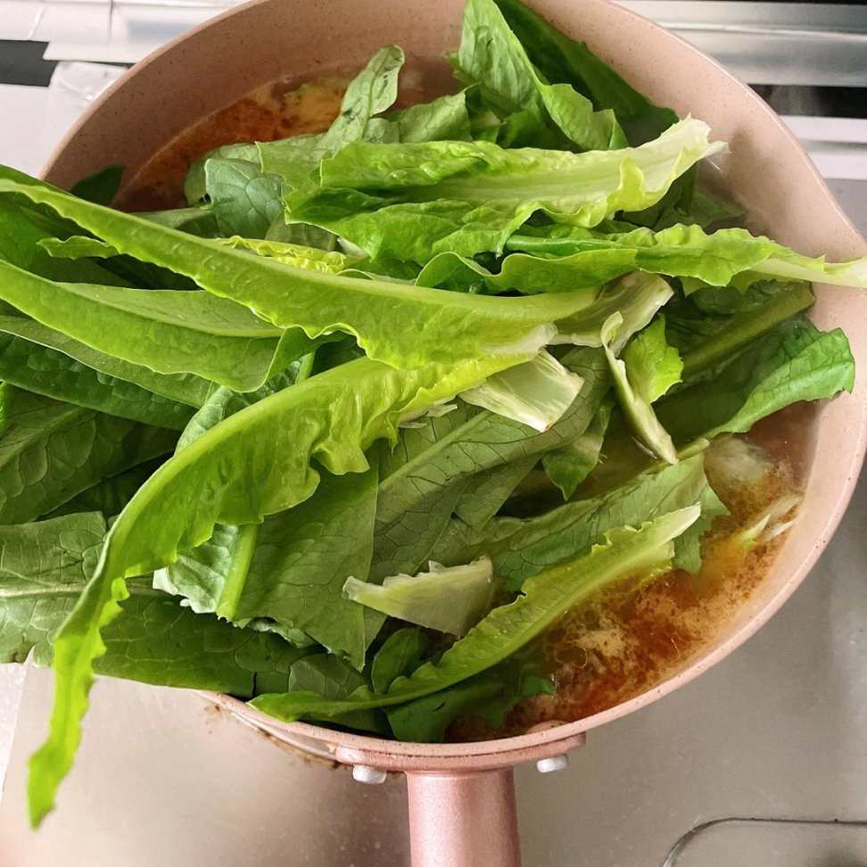 和勻之後開中火或大火煮開兩分鐘下入油麥菜