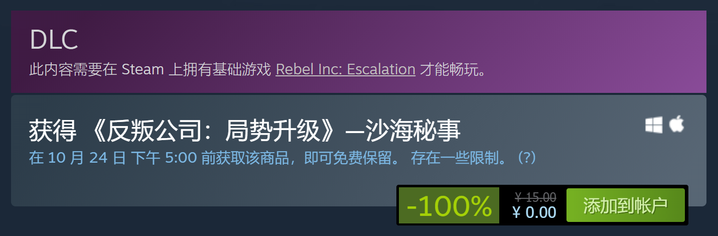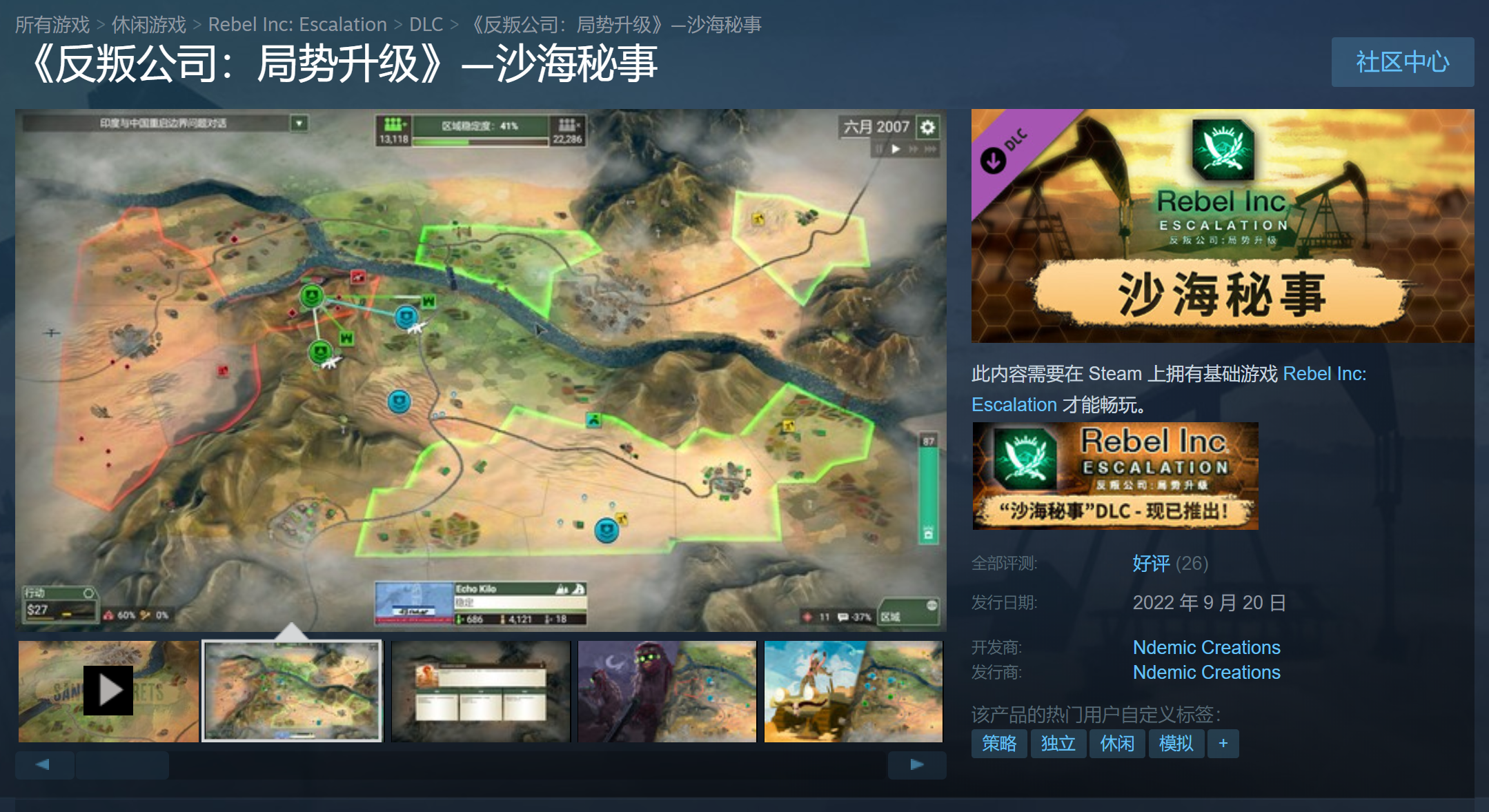 Steam免費領取【反叛公司:局勢升級】DLC【沙海秘事】;