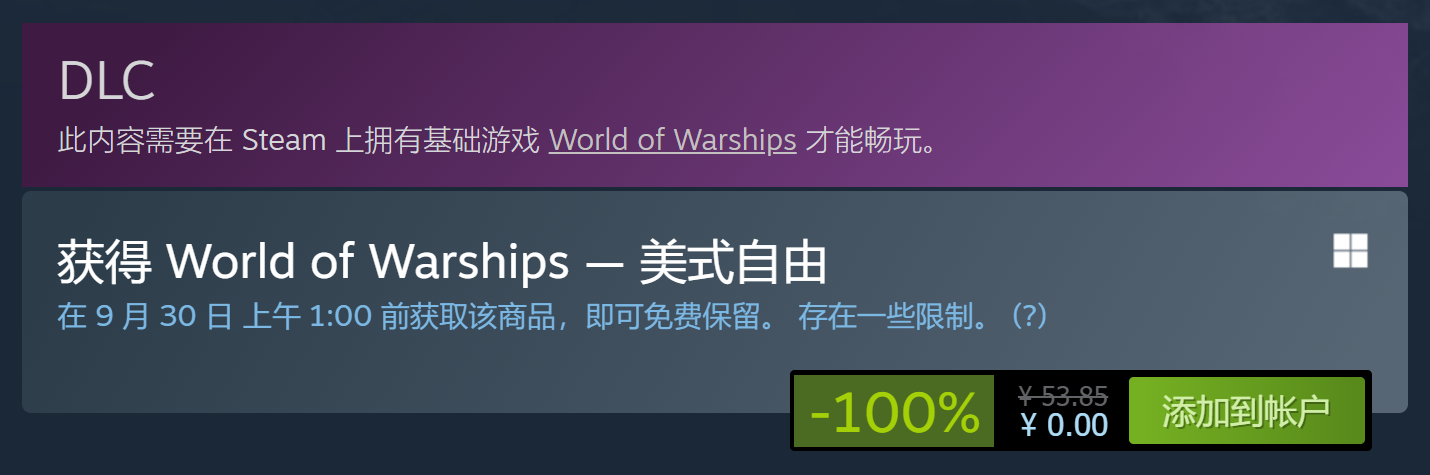 Steam免費領取【戰艦世界】DLC【美式自由】;