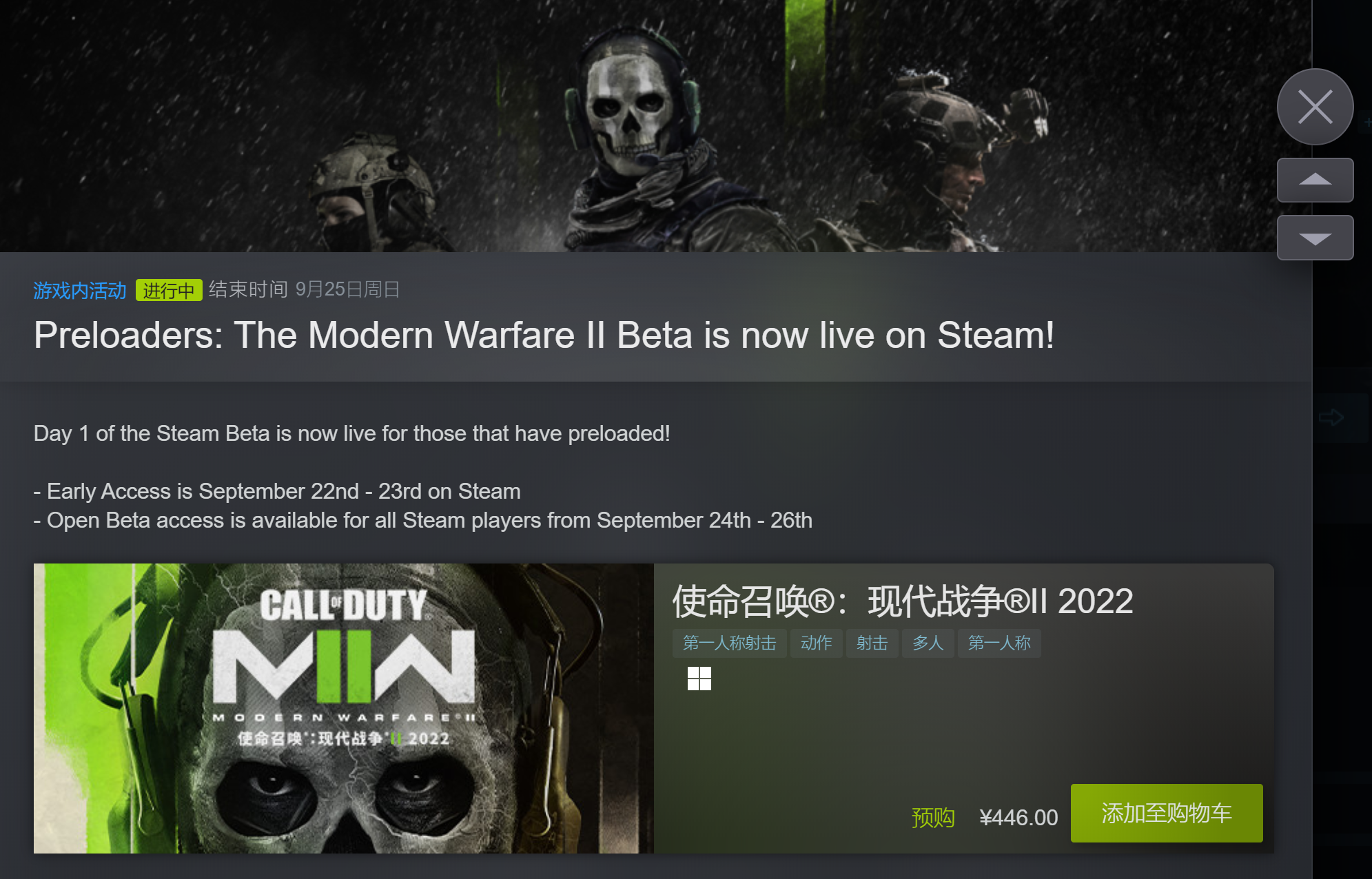 COD19【使命召喚:現代戰爭II 2022】提前公測現已開啟;