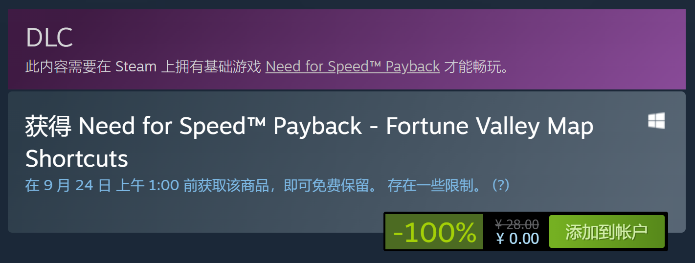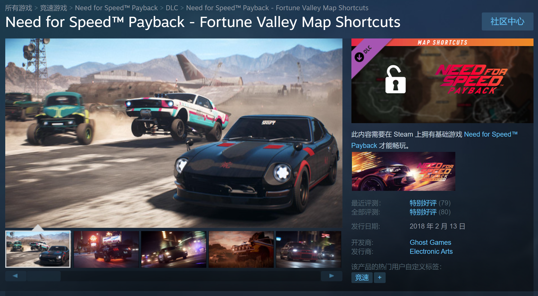 領取鏈接:https://store.steampowered點com/app/1262591/Need_for_Speed_Payback__Fortune_Valley_Map_Shortcuts/