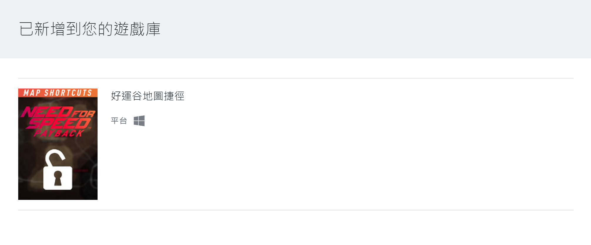 領取鏈接:https://www.origin.com/store/need-for-speed/need-for-speed-payback/addon/fortune-valley-map-shortcuts