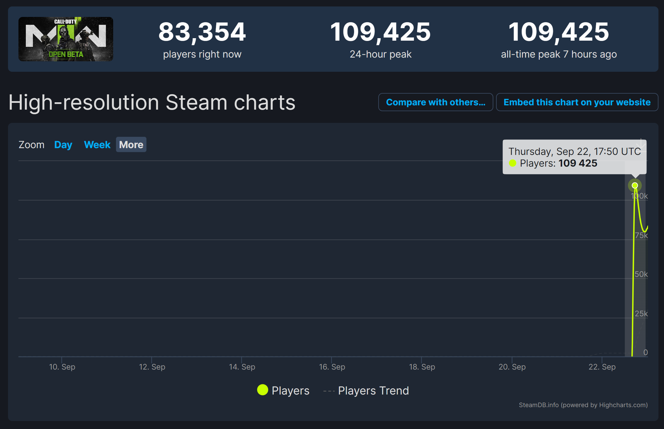 COD系列久別Steam平台後終於回歸,目前COD19的公測同時在線人數已突破10w