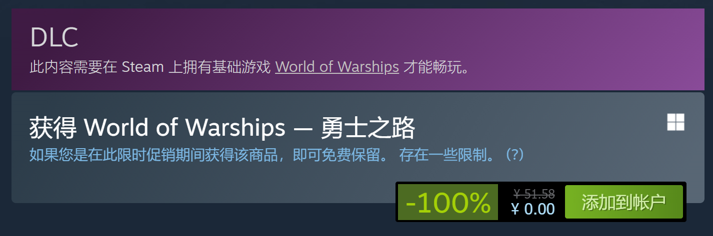 Steam免費領取【戰艦世界】DLC【勇士之路】;
