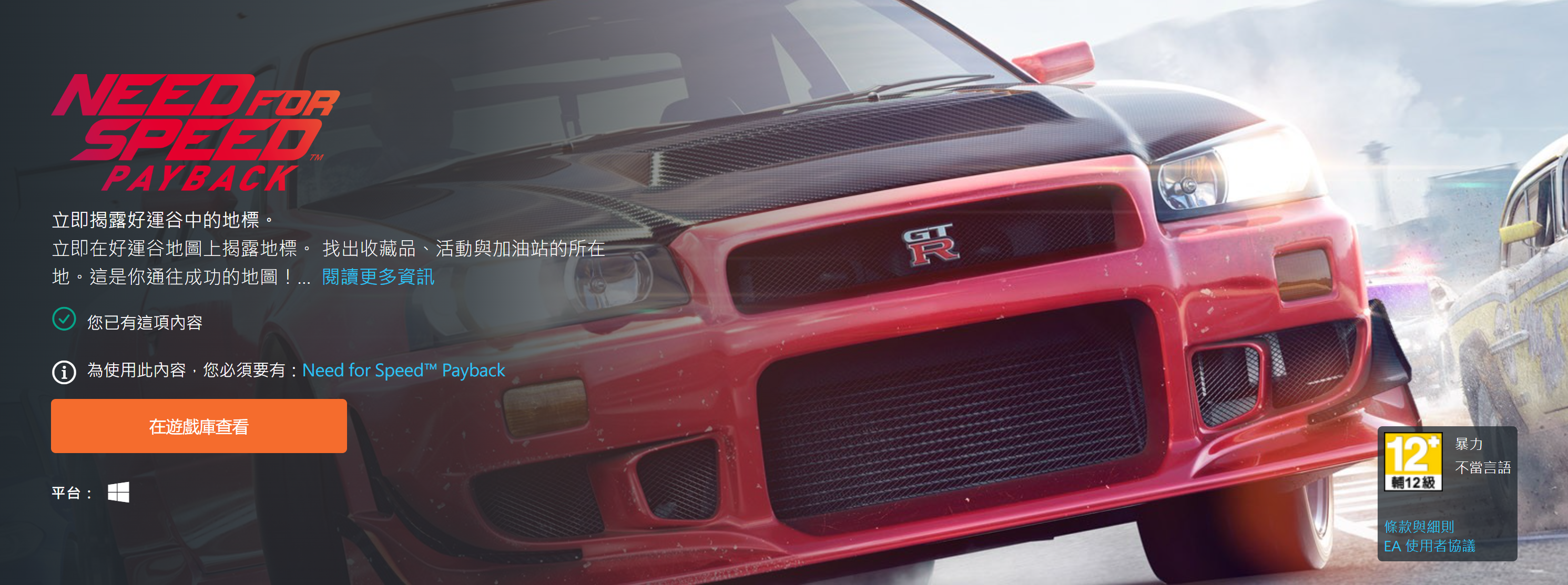 Origin免費領取【極品飛車 復仇】DLC【方辰谷地圖捷徑】;