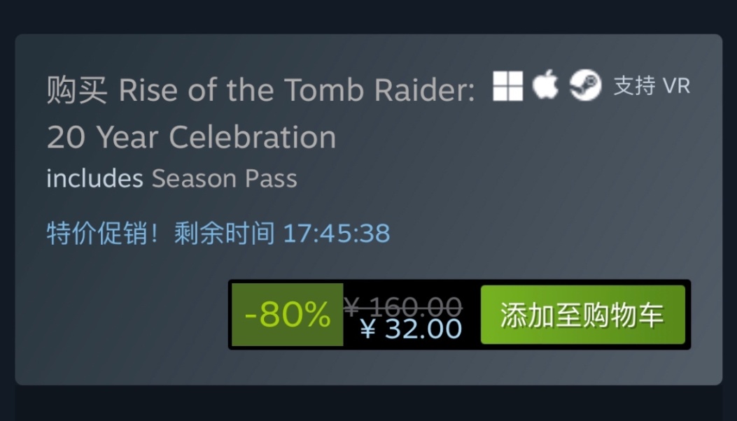 動作冒險游戲《古墓麗影:崛起》非史低32元