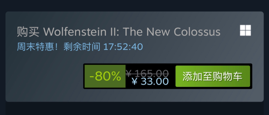 第一人稱動作射擊游戲《德軍總部2:新巨像》平史低33元