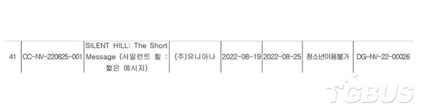 一則寂靜嶺新作《寂靜嶺:短訊(The Short Message)》的評級信息在韓國評級網站上公開,但目前相關詳情尚未公開。本作由Konami在韓國的長期合作夥伴UNIANA負責發行。