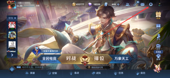 1、首先打開王者榮耀中的設置。