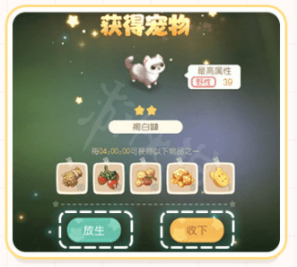 餵食:玩家可以點擊寵物,然後拖動寵物糧食是能夠對寵物進行單獨餵食,也可以一鍵全部餵食,餵食可以增加寵物的屬性等級,也能夠提高寵物的心情。