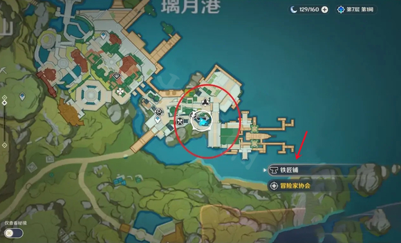 1、在游戲中,打開地圖,我們選擇前往璃月港的鐵匠鋪。