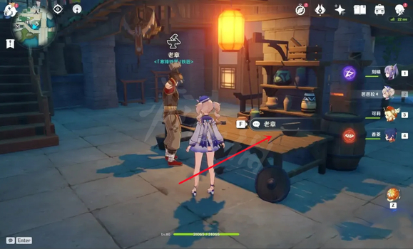 2、來到目的地,找到老章,按F鍵和他對話。