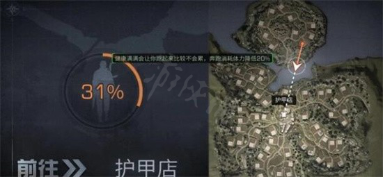 玩家進入遊戲後點擊小地圖,然後在左側的地圖標誌上找到護甲店,地圖即可顯示護甲店的位置,同時在右下角會出現快速前往。