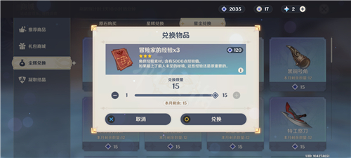 星塵能直接兌換,8星塵換3本藍色經驗書。