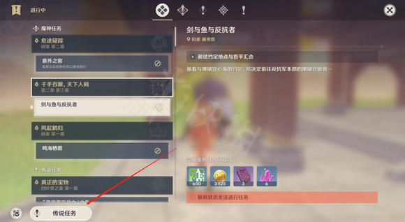 5、進入任務界面後,點擊左下方的傳說任務選項。