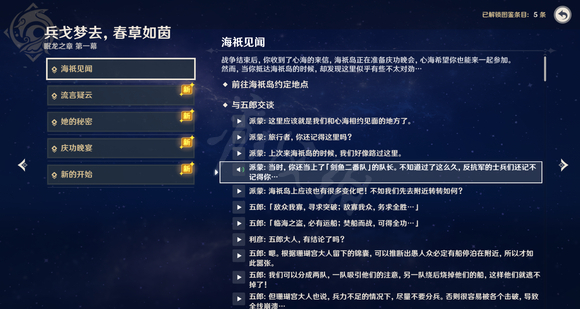 3、第三個前提條件是完成珊瑚宮心海的傳說任務眠龍之章第一幕:兵戈夢去,春草如茵。