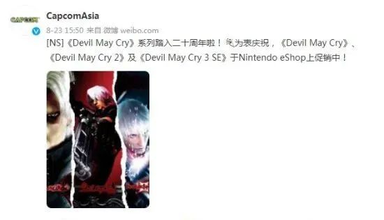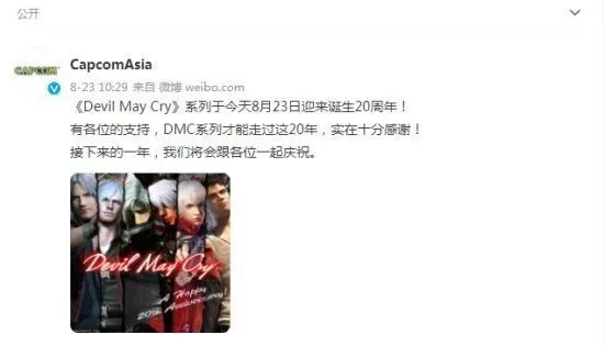 卡普空發賀圖慶祝《鬼泣》系列20周年,並表示接下來的一年裡還將會有其他的慶祝活動和內容。