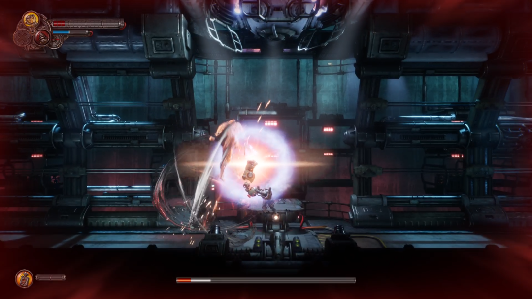 其實在「銀河惡魔城」游戲里強化動作元素並不是什麼新鮮的提法,但鈦核網路這套打法仍然為銀河城經典的配方帶來了有趣的變化:連招操作不復雜的同時,又有著不錯的觀賞性與實戰意義。特別熟巨拳、鑽頭、電鞭三種武器切換運用,輕重連擊與蓄力的combo組合,一招一式間有了幾分硬核ACT游戲的韻味。