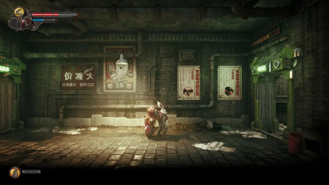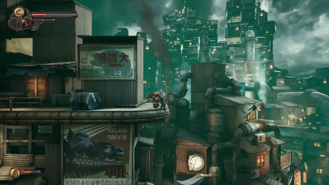 而《暗影火炬城》同樣是一款基於這套公式化框架,但又做出了自身特色的優秀作品。游戲將故事設定在一個動物擬人的柴油朋克世界觀中,動物居民「絨民」與機械階層「軍團」的矛盾是故事的核心。玩家所扮演的主角老兵雷德文是動物居民中的反抗者,為了拯救朋友老熊不斷深入敵方控制區。