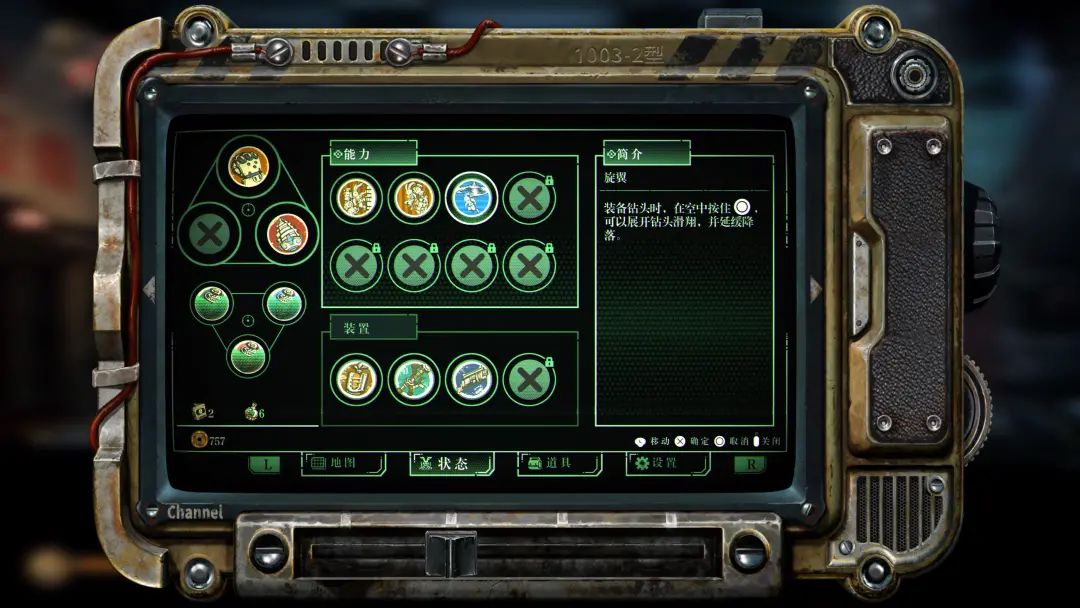 除了巨拳、鑽頭、電鞭這三件武器裝備外,游戲也提供了許多額外的成長性收集品與技能樹供玩家獲取。