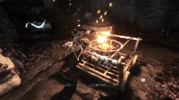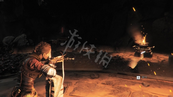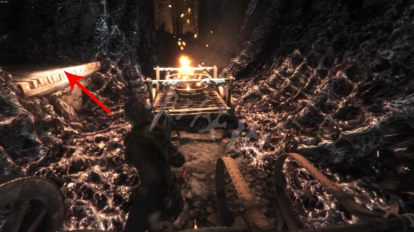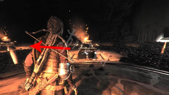到下一區域,先點燃中央的火盆。可以看到場景中有3輛推車。