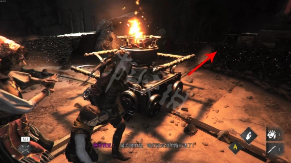 打開特殊工作台後出來,點燃下方的推車上的火盆。