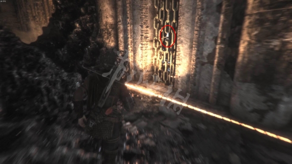來到下個區域,這里的巨門被四根門閂鎖住。