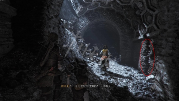 到第三個房間,走到鎖住的鐵門前觀察。之後等索菲亞將“希臘炮彈”搬到門前,拉開距離投擲火彈引爆。