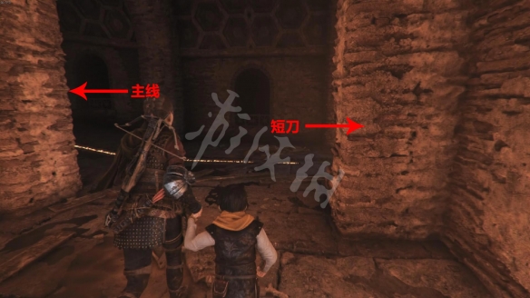 從房間里出來有兩條路,往右邊走能從一具干屍身上拿到短刀。