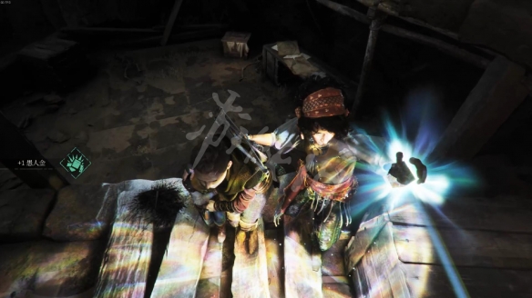 先找到邊上掛有紅色布條的房間。房間的門被鎖住,命令雨果從一旁的門洞鑽進去。
