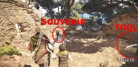 然後來到風車2和風車3之間,往下走穿過幾個石拱門,右拐爬梯子進入洞穴,來到盡頭處就能拿到神秘裝備,開箱還可以拿到2個工具。這件裝備可以加快受擊回復速度,有了它之後玩二周目會更加簡單。