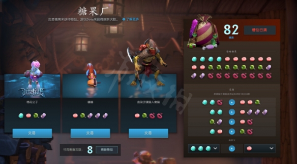 可以在這里根據獲得的糖果換取相對應的獎品,不同類型的糖果也可以進行兌換,兌換的獎品也可以刷新(一周最多刷新10次),除了夜魘暗潮專屬獎品,還有勇士積分,至寶等獎品可以兌換。