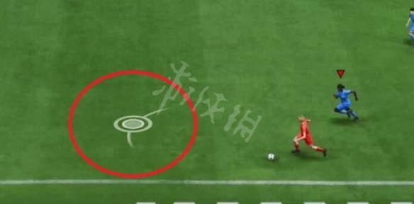 防守時也會在對方的持球球員前方出現標識(如下圖),該點即為做出攔截的最佳位置。
