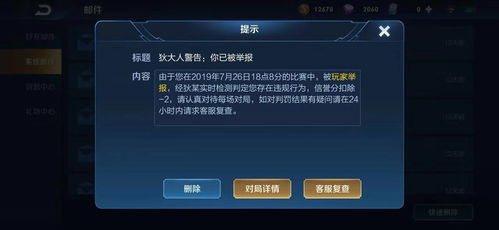 02查看系統郵件,在游戲頁面的右上角,會有相應的系統郵件通知,被舉報系統會有提示:如果我們被玩家舉報(而且成功了)被扣分的話,是會有郵件通知的,不成功(是沒有的)03查詢扣分原因:我們可以在扣分的明細里來進行查看一下,我們這一次被扣分主要是什麼原因,為什麼會被扣這麼多,是什麼原因導致扣了這麼多。04進行申訴,點擊申訴選項會彈出相應的對話框。