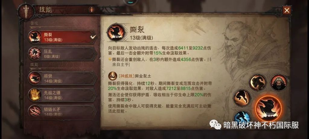 1 技能:大地踐踏,躍擊,先祖之錘,不滅,撕裂。