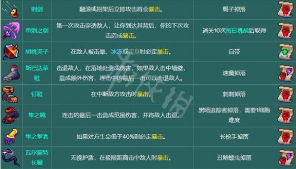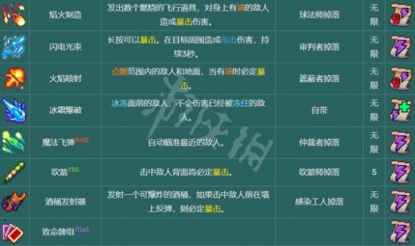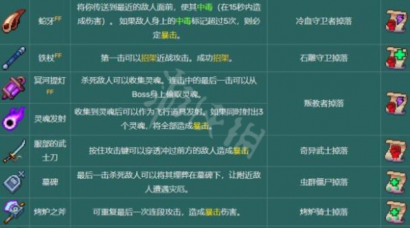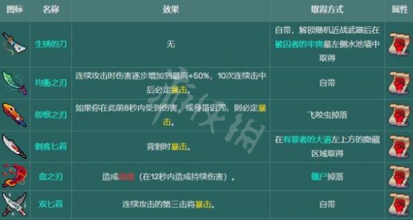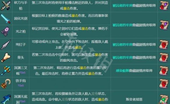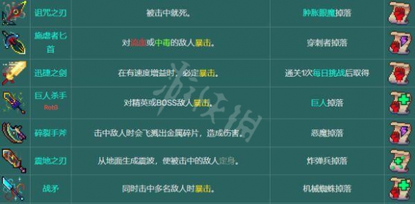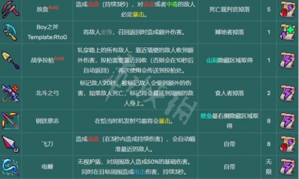 遊戲中的武器主要分為近戰武器,遠程武器和盾牌三類。